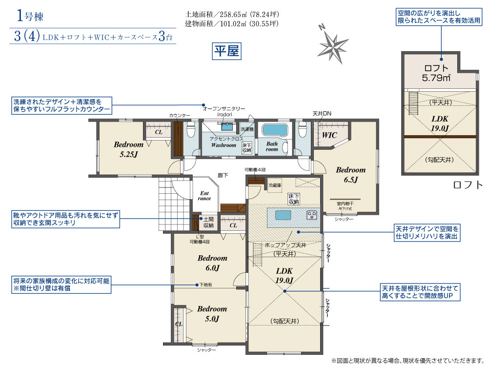 ・LDK頭上にロフトを完備!季節外のお荷物や、お子様の秘密基地になるかも??