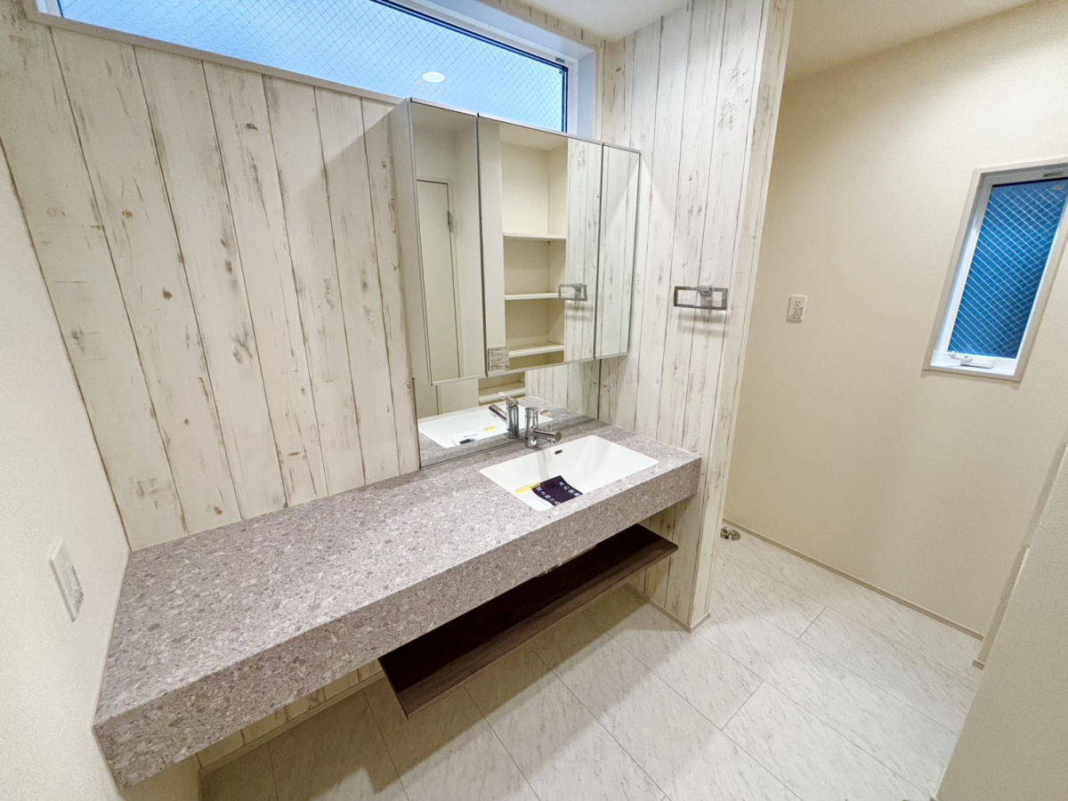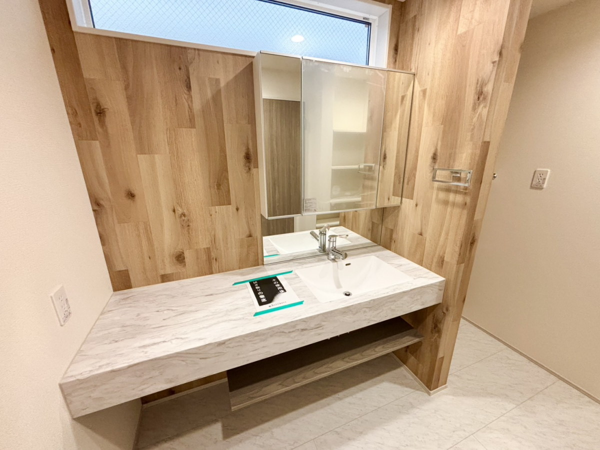 スマートサニタリー 1号棟 おしゃれさと使い勝手・お掃除もしやすい広々洗面台!