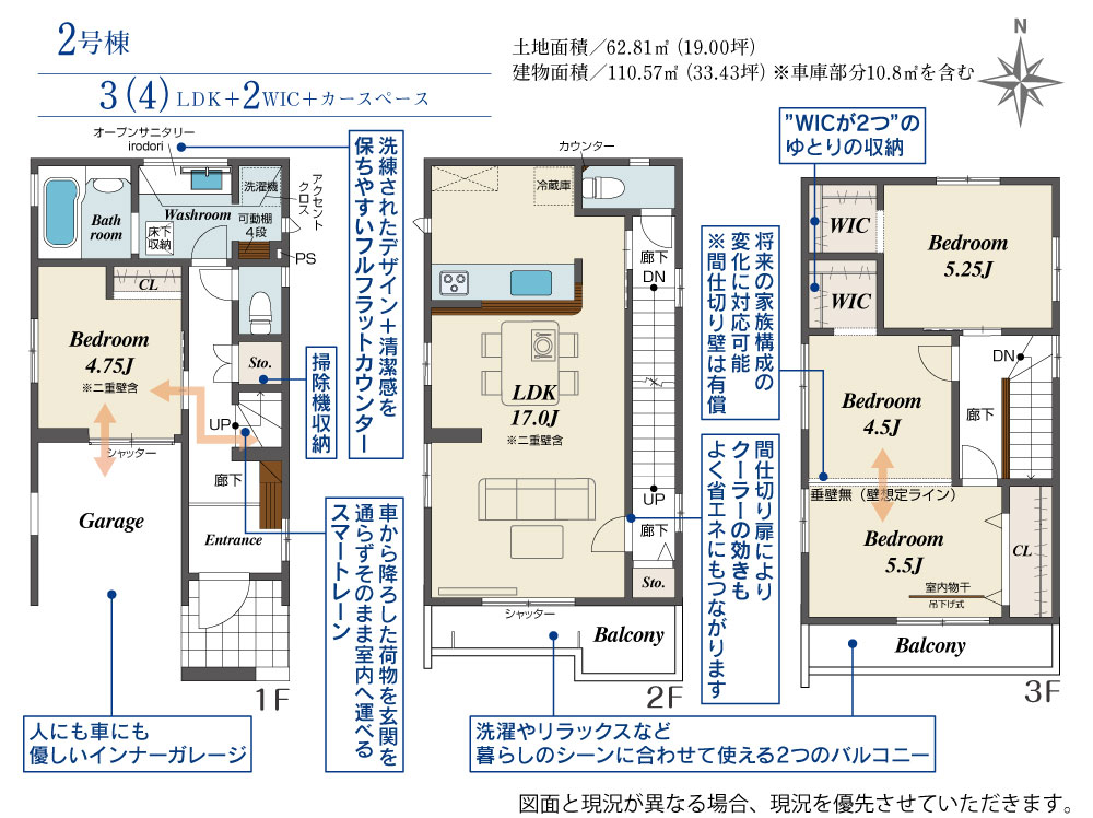 ・将来的にお部屋を増やせる可変間取り採用(有償)・ビルトイン車庫で愛車を守ります