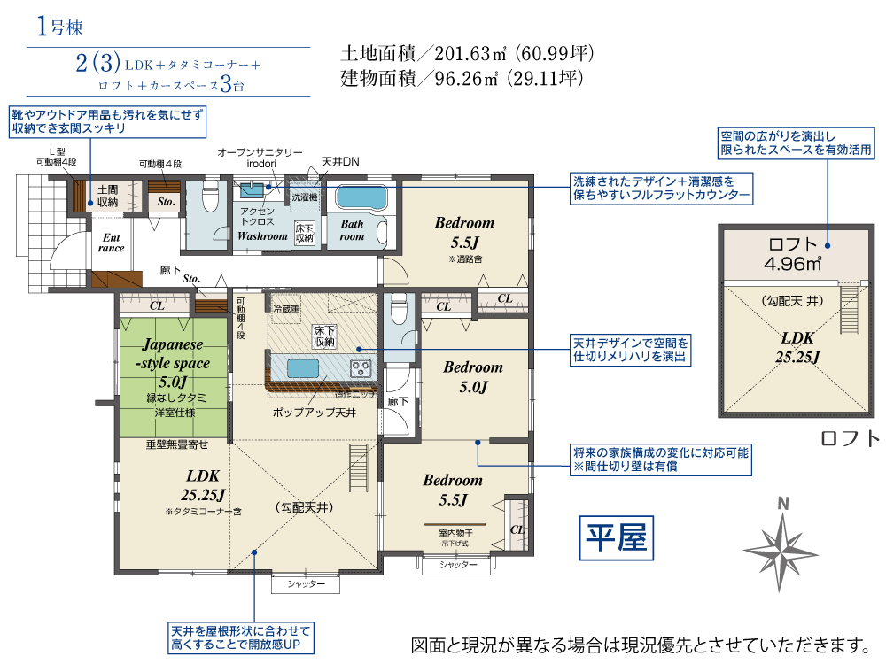 ・LDKは畳コーナーを含んだ25帖超