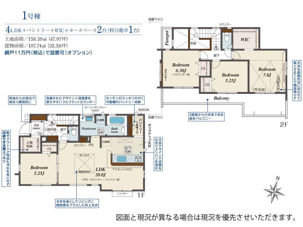 資料請求/現地見学敷地47坪超!砂利部分(砂利目地部分を除く)防草シート、宅配ボックス標準装備!