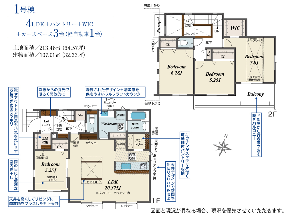 ★敷地面積213平方メートル以上でゆとりある面積!並列駐車2台+1台の計3台駐車可能です♪