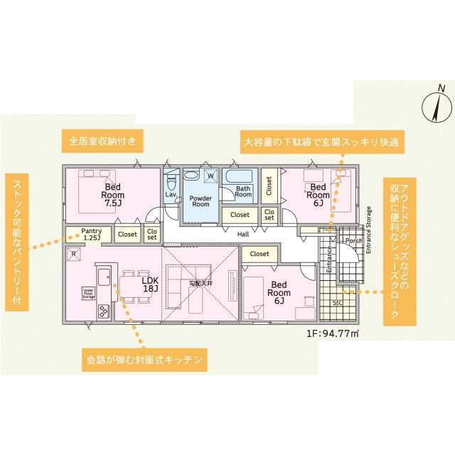 - 高台、全面道路5m以上、外壁サイディング、設計住宅性能評価取得、給湯、集いを楽しむ暮らし、庭が広い