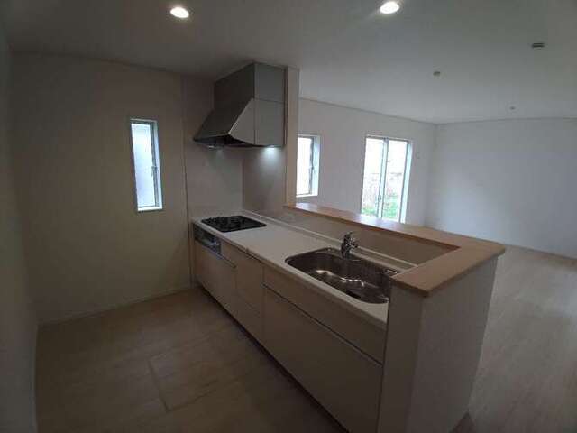 資料請求/現地見学ゆったりめの延床面積95.58㎡の居室空間、主菜・副菜・味噌汁が一度に作れる3口コンロだから時短になります。家族みんなのワガママにも応える4LDK。