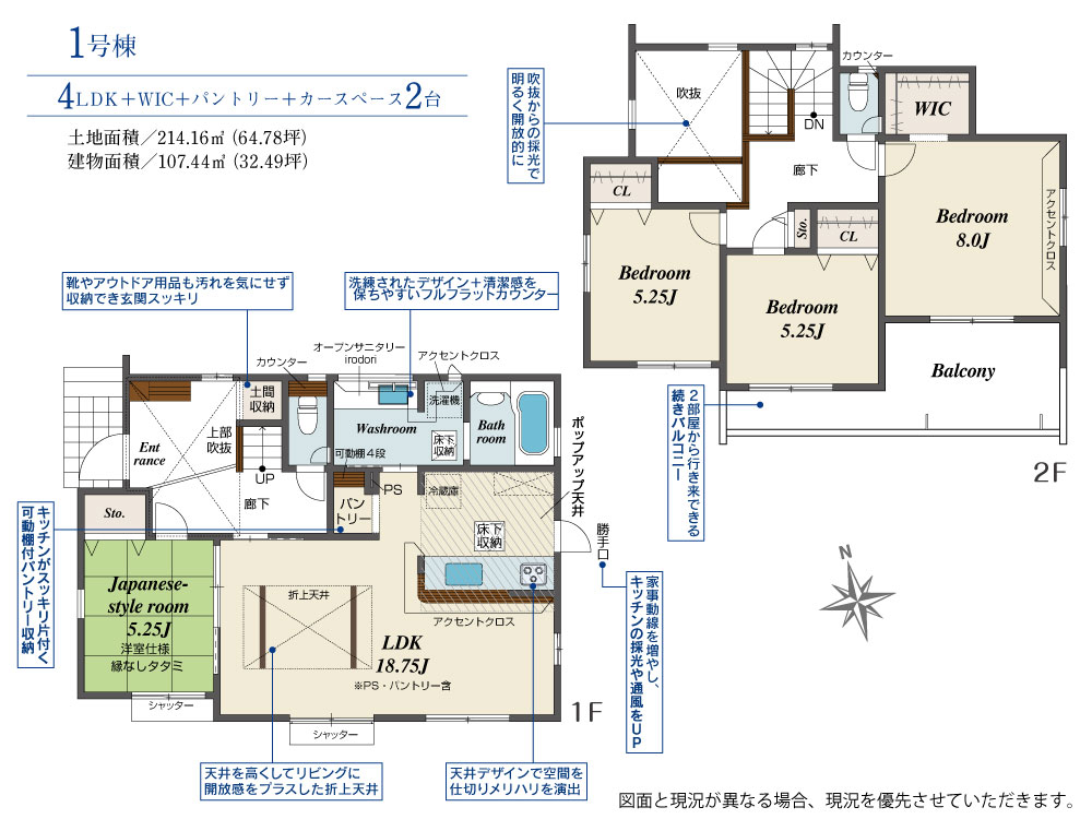 ★魅力的な間取り★・玄関吹抜採用!ドアを開けた瞬間に明るく開放的な印象が広がるよう 採光を最大限に取り入れる設計にしました!・パントリー付きのキッチンには食器洗濯乾燥機あり◎ 家事の負担軽減に♪・玄