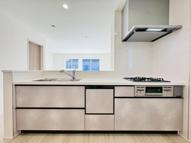 ・リビング全体を見渡せる対面キッチン、料理や後片付けをしながら家族との会話を楽しめます。
