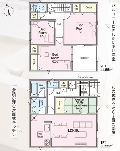 資料請求/現地見学ゆったりめの延床面積94.77㎡の居室空間、更に素敵な空間を演出できるルーフバルコニーが暮らしの中に解放感をもたらします。家族というコミュニティを支える4LDK。