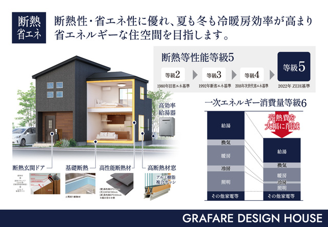 エネルギー消費性能★★★(削減率20%達成)、断熱性能5段階/7段階中、本現場に関して全ての棟の「エネルギー消費性能」と「断熱性能」は代表棟ラベルと同一です。