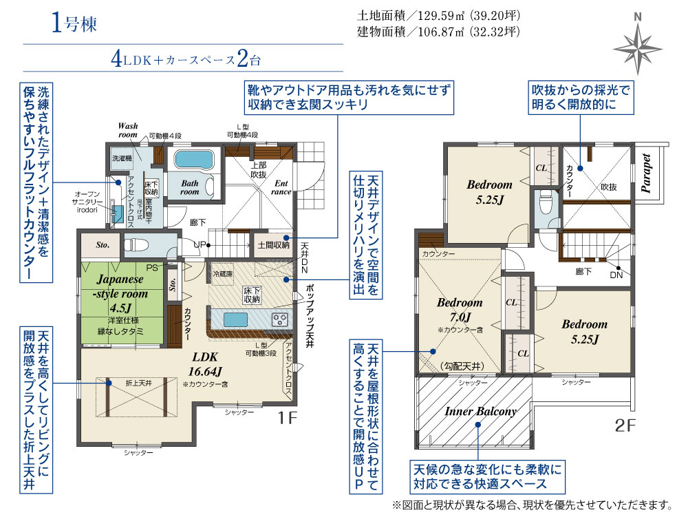 ・1号棟 和室付き4LDK・玄関吹き抜けで開放感のあるプラン・全居室クローゼット付き