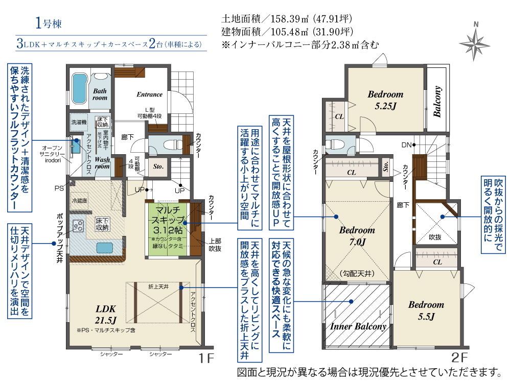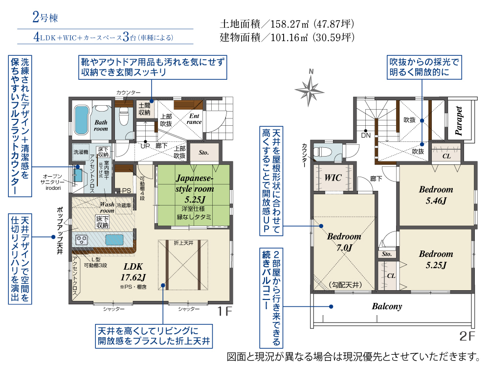 開放的な玄関とオープンサニタリーが魅力の全2棟・全居室クローゼット付き