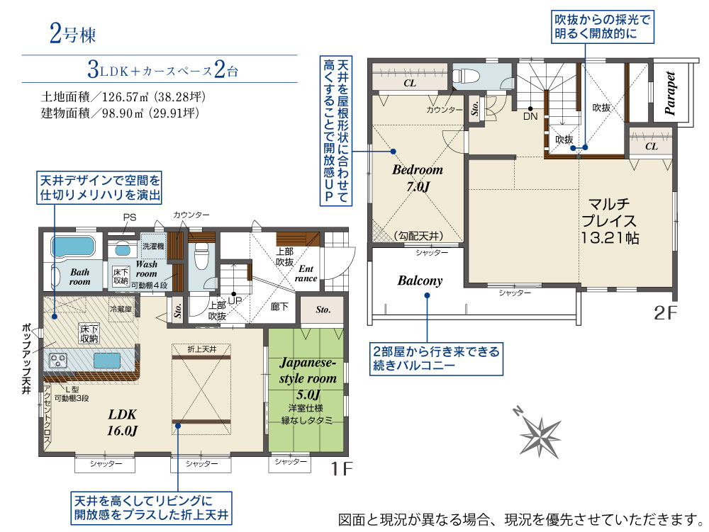 2号棟 3LDK マルチプレイス(可変型居室※別途費用がかかります)、カースペース2台