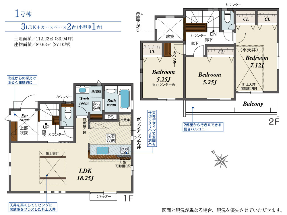 ポップアップ天井、折上天井がおしゃれな空間を演出します。