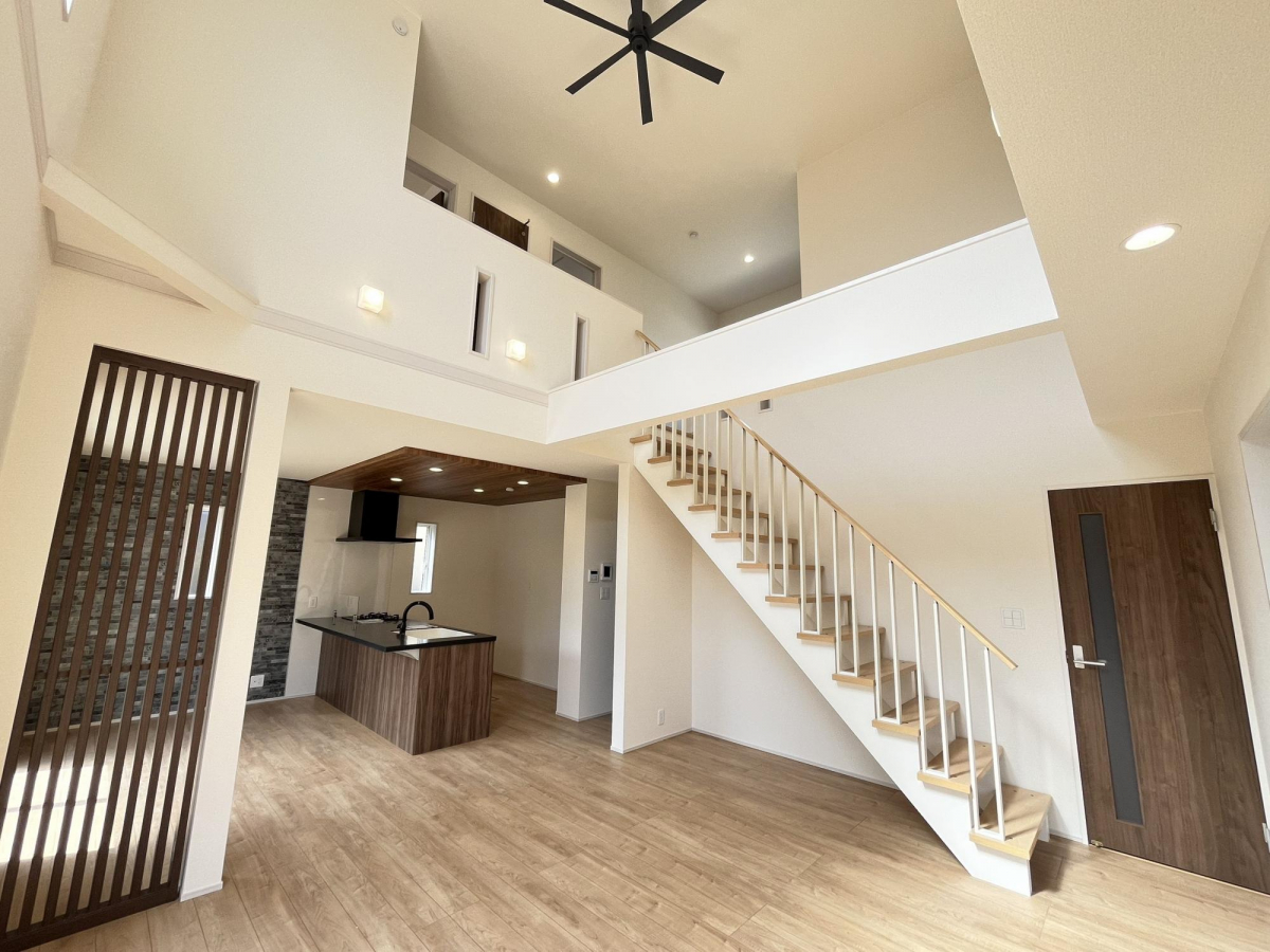★スケルトン階段を採用した20帖のLDKは、上部吹抜により開放的な空間を演出!!オシャレなスケルトン階段は一見の価値有り!!