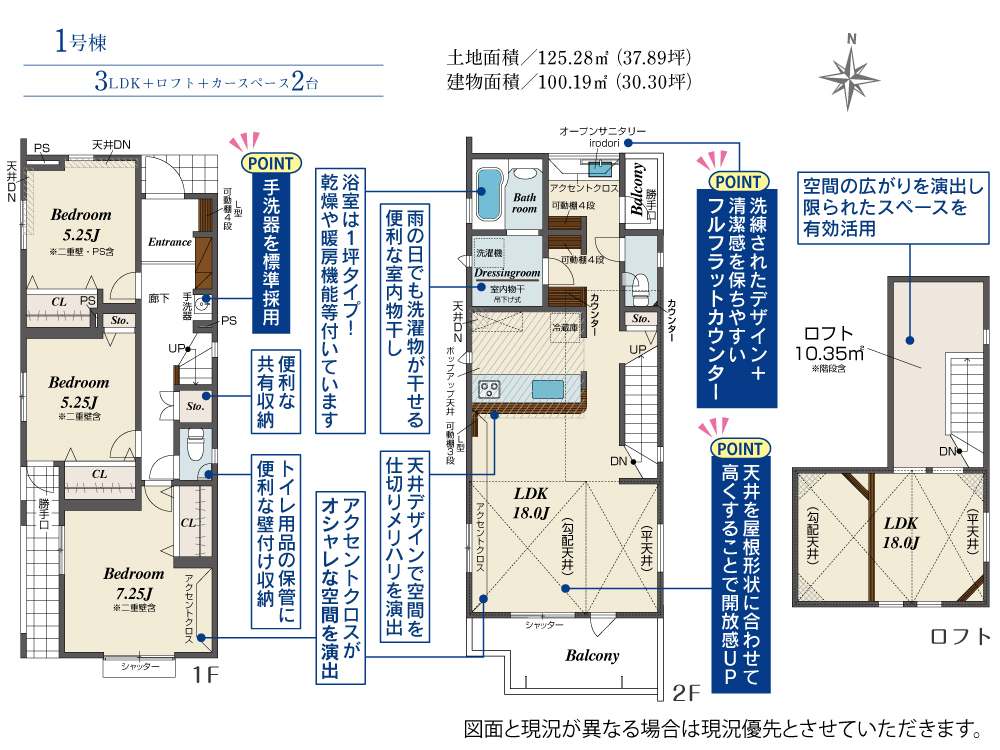 ★天井が高く開放感溢れる2階リビング! !固定階段ロフト付き!!((1)号棟)