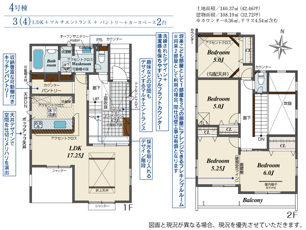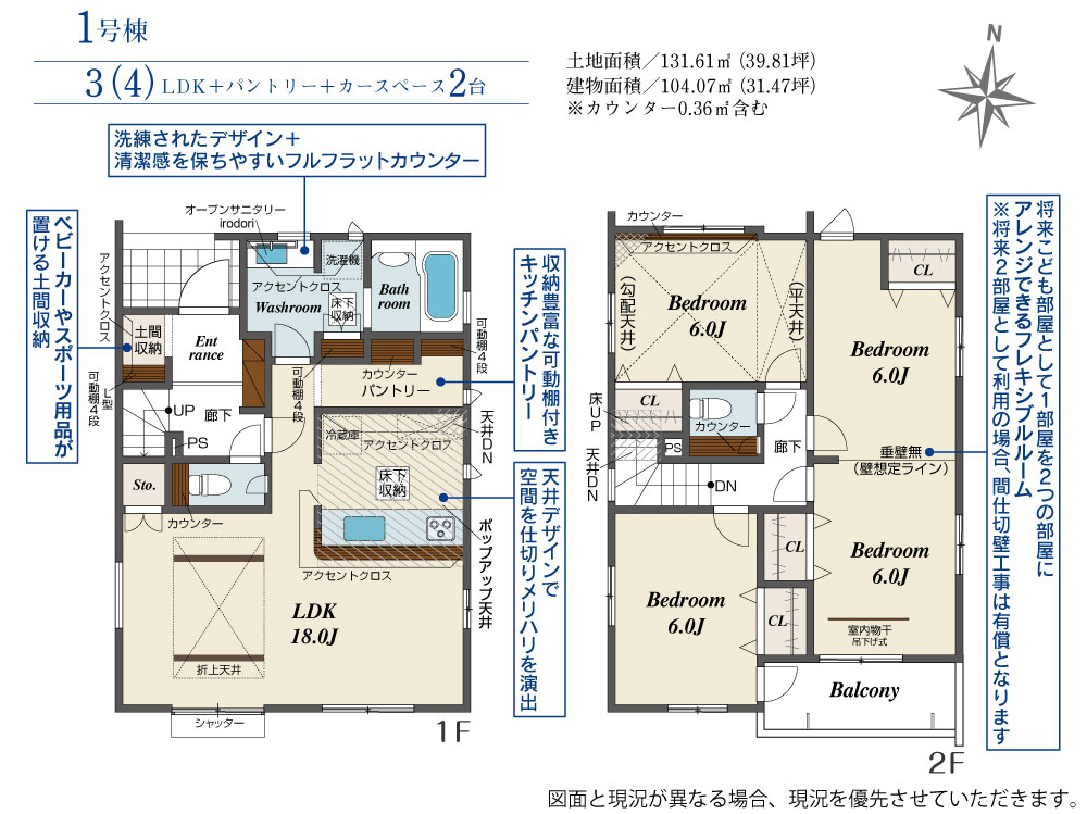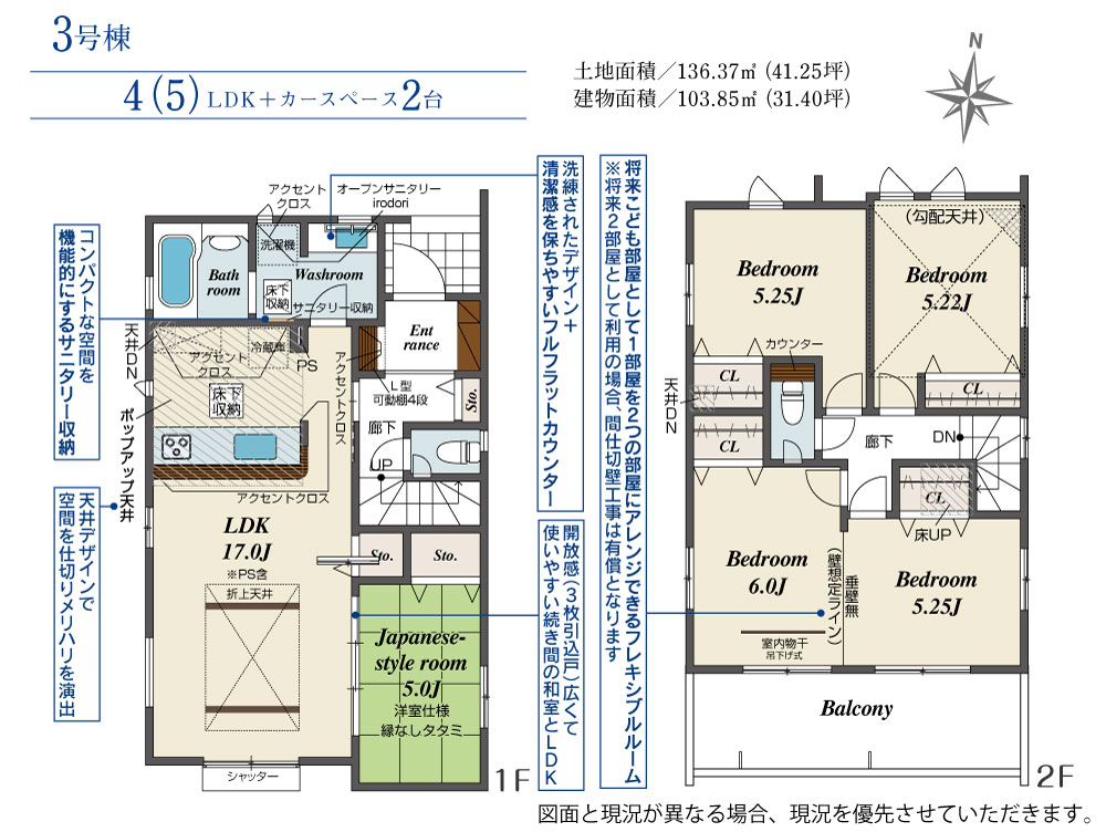 ■ 2ドア2クローゼットで3→4LDKに可能フレキシブルルーム