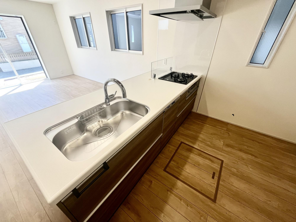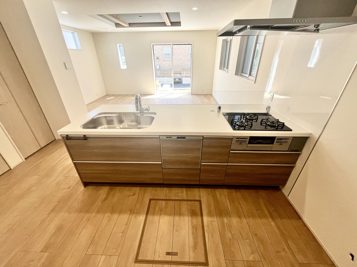 ■食洗機付き・タッチレス水栓のフルオープンキッチンカウンター