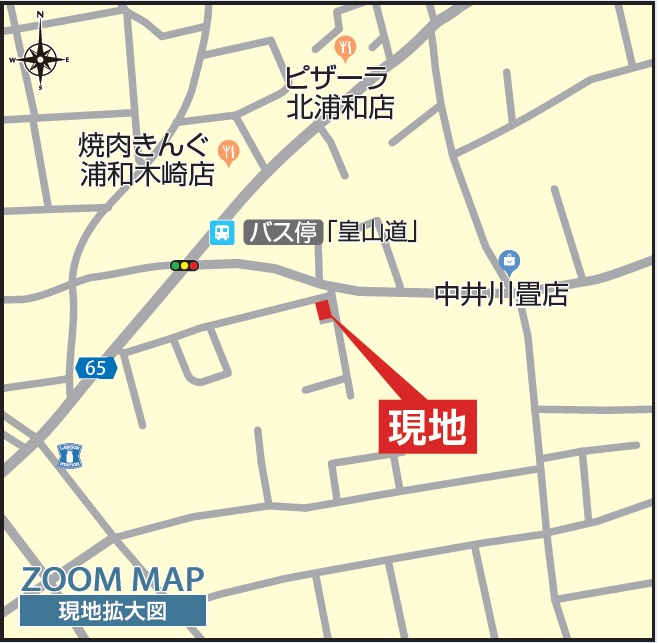 「北浦和」駅まで徒歩23分 または バス4分 バス停「皇道」まで 徒歩3分