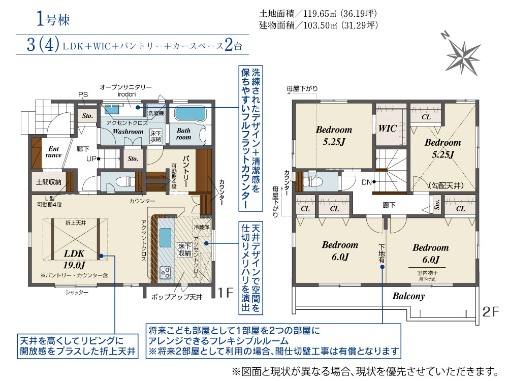 こだわりの設備・仕様(土間収納・ポップアップ天井・パントリー・オープンサニタリーirodori、・食洗機・玄関カードキー(電池錠))