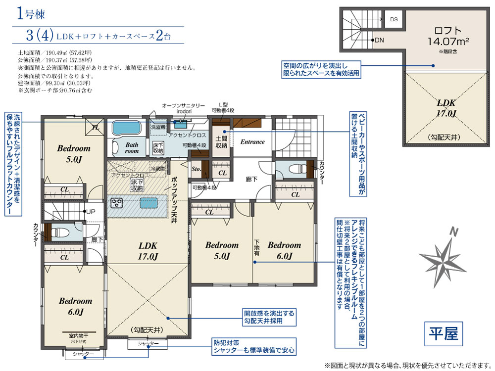 収納にも便利な固定階段ロフト・用途多彩な土間収納などを採用したこだわりの永住邸が誕生