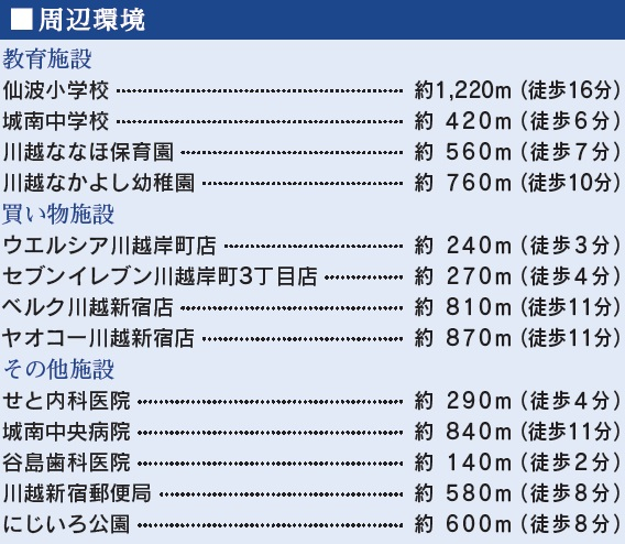 JR川越線、東武東上線「川越」駅まで徒歩18分・自転車7分(約1 400m)