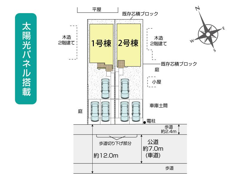 南側幅員約12.0m道路(歩道約2.4m含む)に面した、