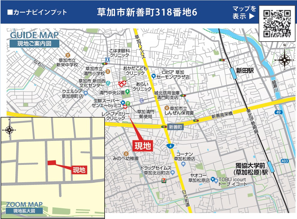 資料請求/現地見学■ カースペース2台(うち1台インナーガレージ)■ バス停徒歩4分・新田駅へバス12分