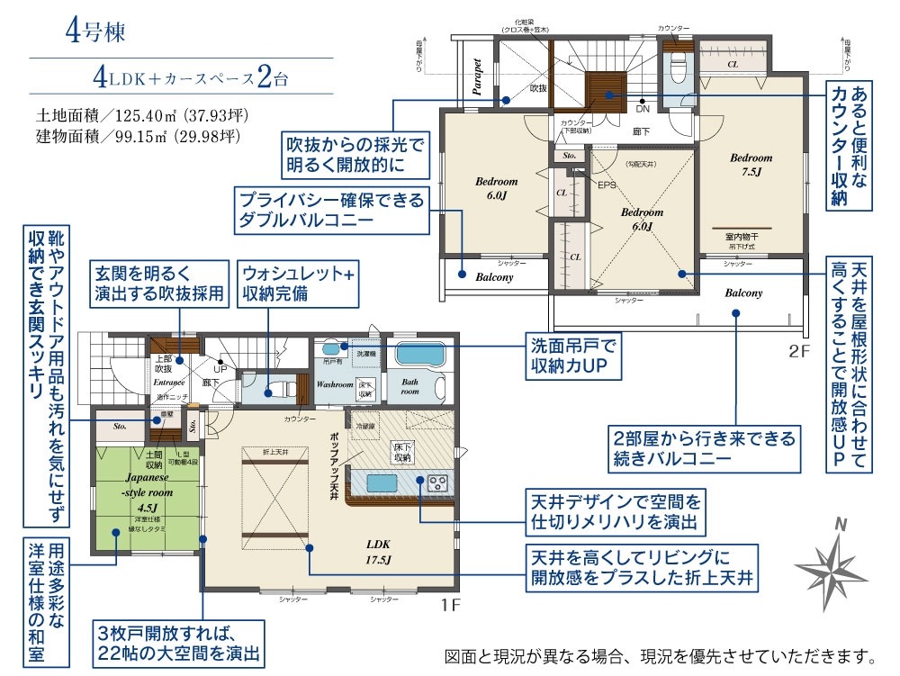 ・全棟、土地面積118m2超のゆとりある街並み。