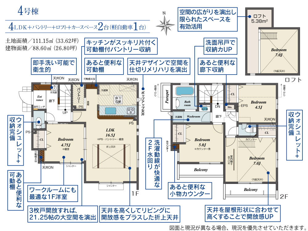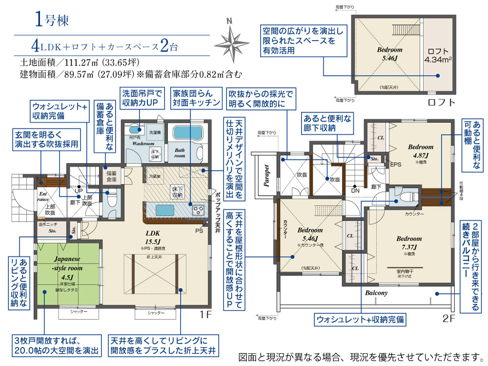 ・全邸ロフト付き!収納豊富な住まいで住空間をすっきりと保てます。