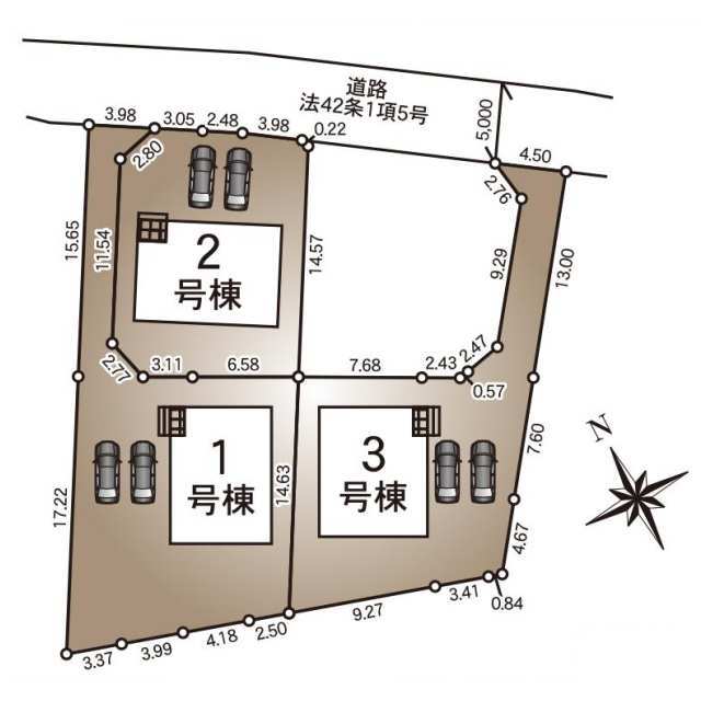- 1号棟 北東:4.8m 2号棟 北東:4.8m