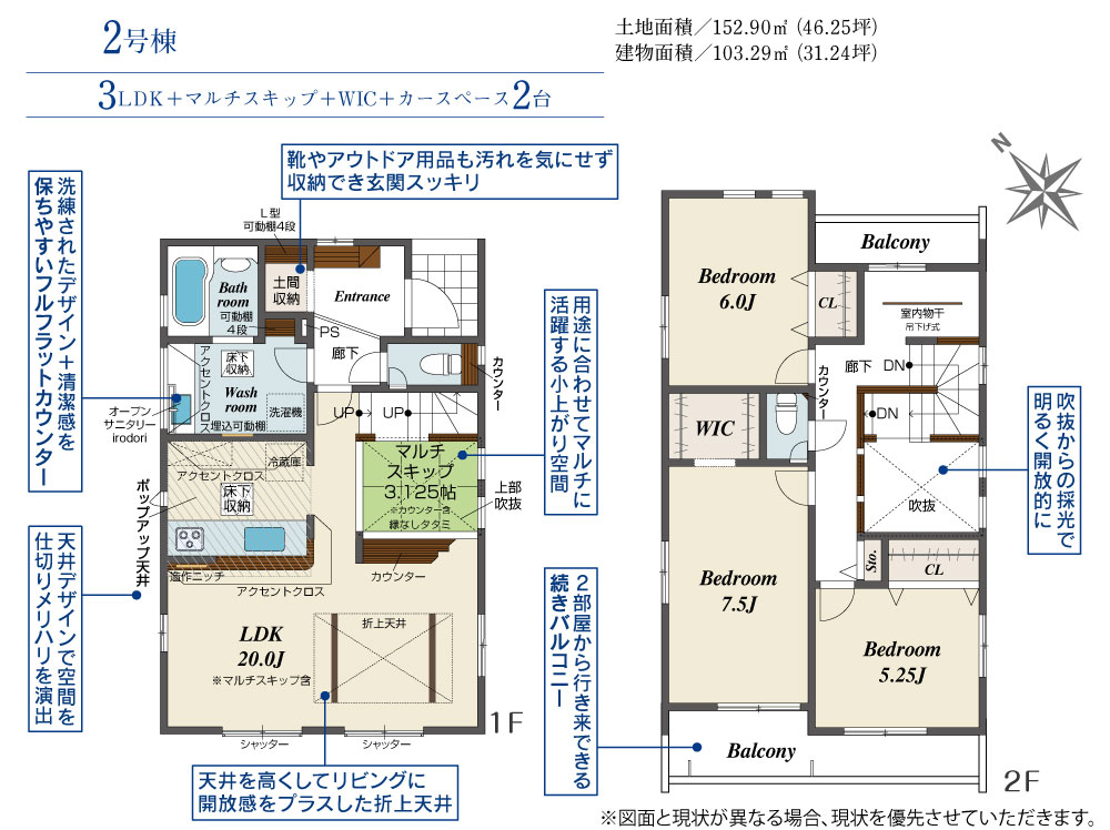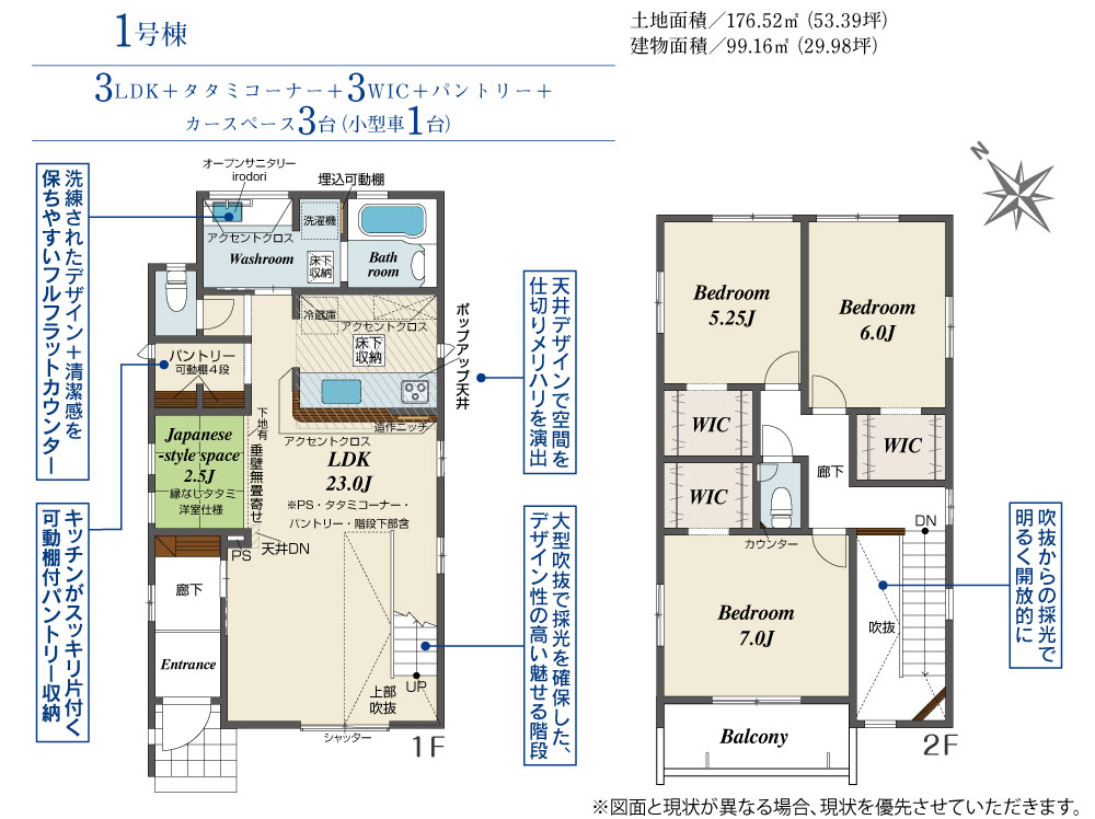 1号棟タタミコーナー+3WIC+パントリー+カースペース3台(小型車1台)