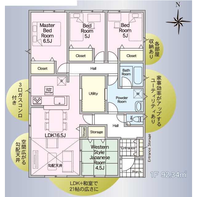 1号棟:4LDK+WIC、2号棟:4LDK、3号棟:4LDK+ユーティリィティ