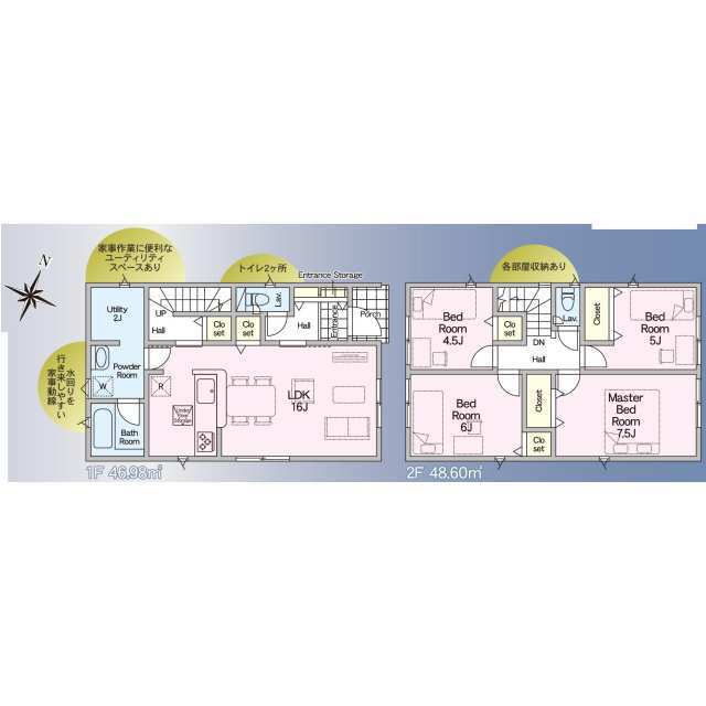 1号棟:4LDK+納戸、2号棟:4LDK+ユーティリィティ