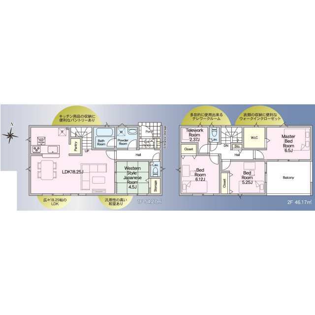 1号棟:4LDK、2号棟:4LDK+WIC+テレワークルーム