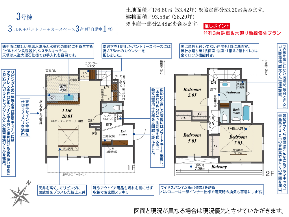 資料請求/現地見学カースペース3台駐車可能!!デザイン性も 重視しています。