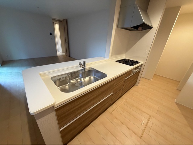 システムキッチン設置済で一体感のあるデザインの台所です。お鍋とフライパンを使いながらヤカンもおけるコンロ3口以上付です。家族というコミュニティを支える4LDK。