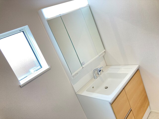 - 外壁サイディング、駐車場3台分、システムキッチン、モニター付インターホン、床下収納、カウンターキッチン、複層ガラス、フローリング、設計住宅性能評価取得、個別プロパン、公営水道、公共下水(汚水)、公共下水(雑排水)