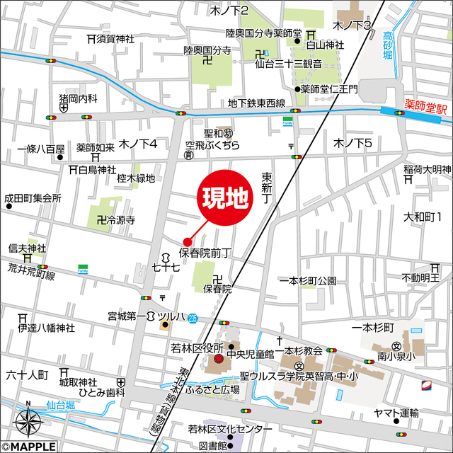 仙台市営地下鉄東西線「薬師堂」駅まで徒歩11分(872m)