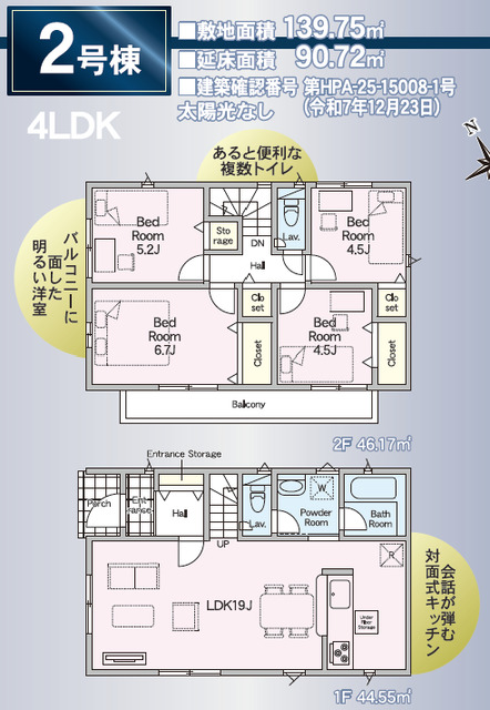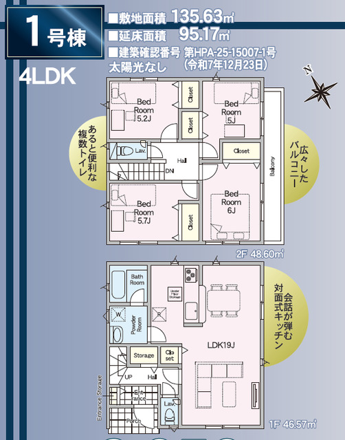 エネルギー消費性能★★★(削減率20%達成)~★★★★(削減率30%達成)、断熱性能5~5段階/7段階中、本ラベルは特定の住戸の性能を示すものであり全ての住戸の性能を示すものではありません。