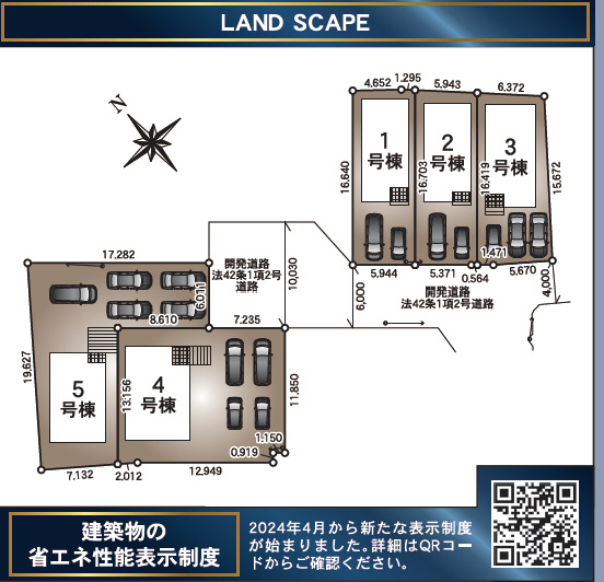 エネルギー消費性能★★★(削減率20%達成)~★★★★(削減率30%達成)、断熱性能5~5段階/7段階中、本ラベルは特定の住戸の性能を示すものであり全ての住戸の性能を示すものではありません。