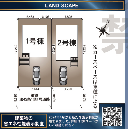 エネルギー消費性能★★★★★★(削減率50%達成)、断熱性能5段階/7段階中、本現場に関して全ての棟の「エネルギー消費性能」と「断熱性能」は代表棟ラベルと同一です。