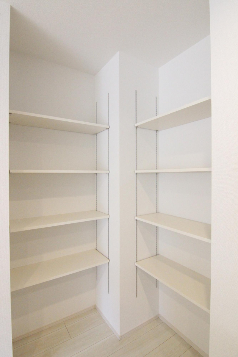 可動棚付きで食器や調理器具がスッキリ♪
