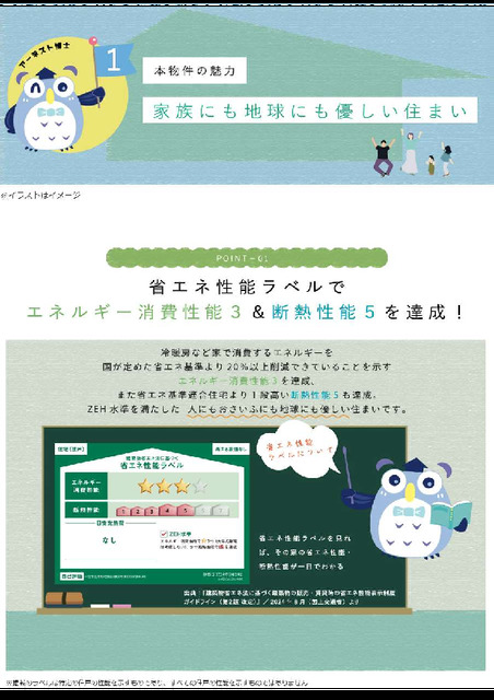 エネルギー消費性能★★★(削減率20%達成)、断熱性能5段階/7段階中、本現場に関して全ての棟の「エネルギー消費性能」と「断熱性能」は代表棟ラベルと同一です。