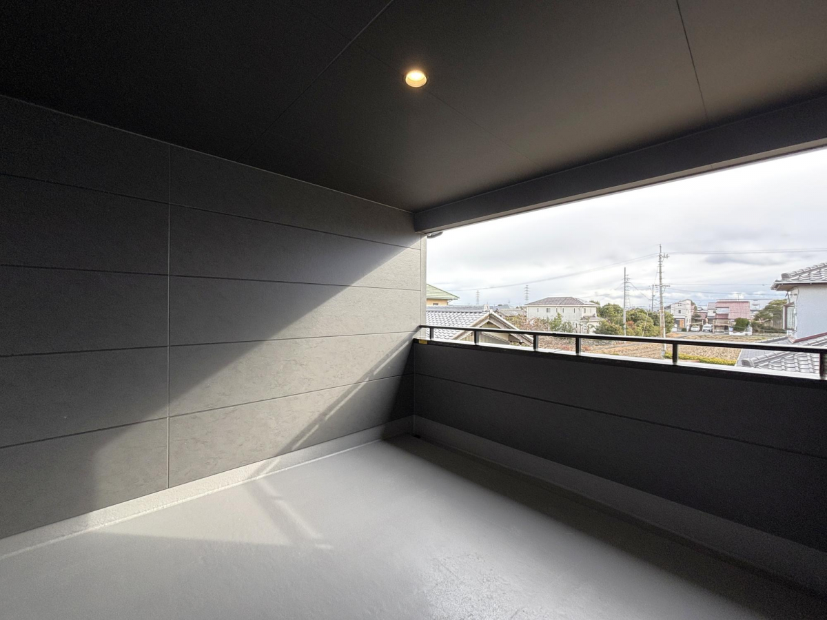 廊下と洋室から行き来ができる奥行きのあるインナーバルコニー