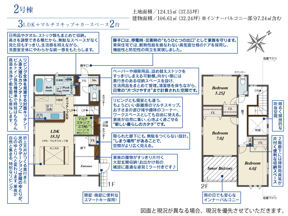 ~(1)号棟玄関~廊下~キッチンと生活のしやすい動線に。暮らしやすさを大切にした間取り。(2)号棟遊ぶ、学ぶ、くつろぐ。暮らしを立体的に楽しむマルチスキップ設計~