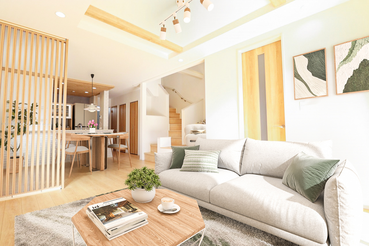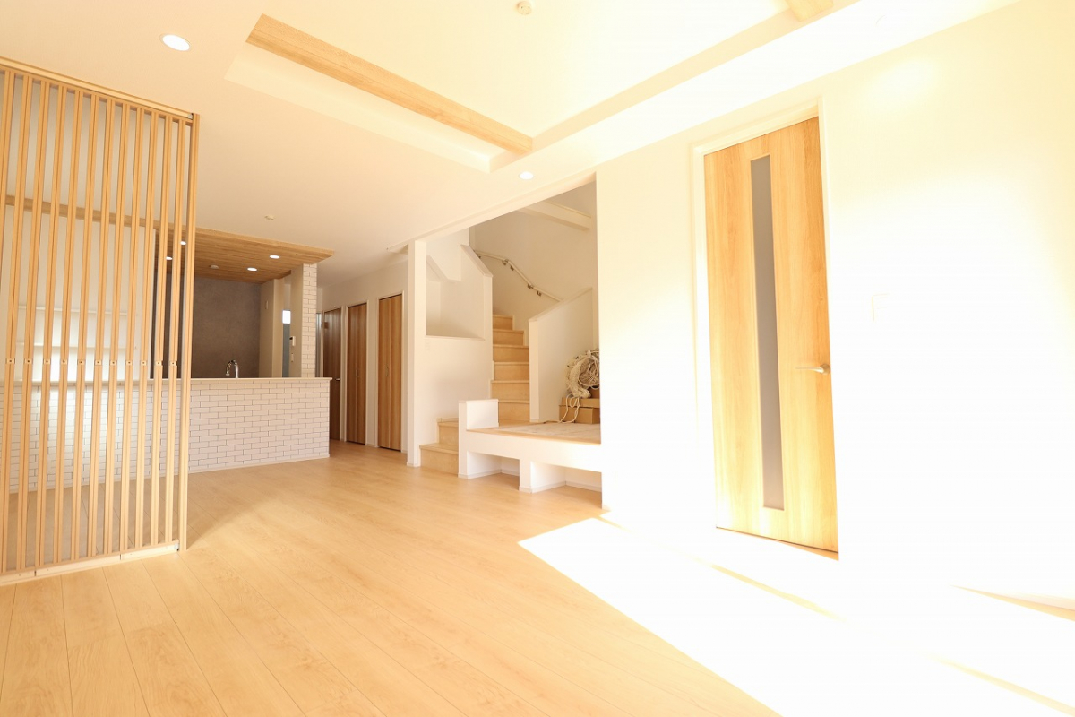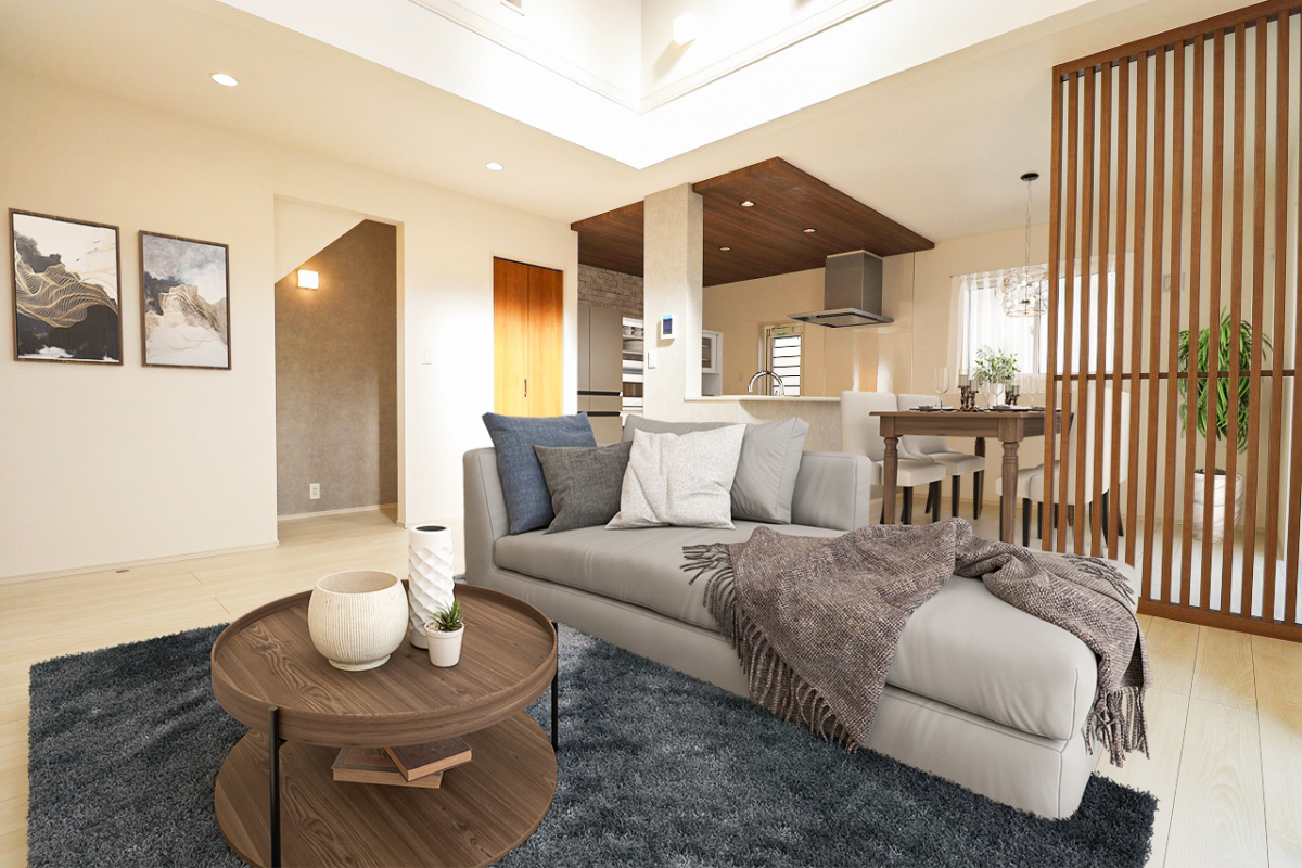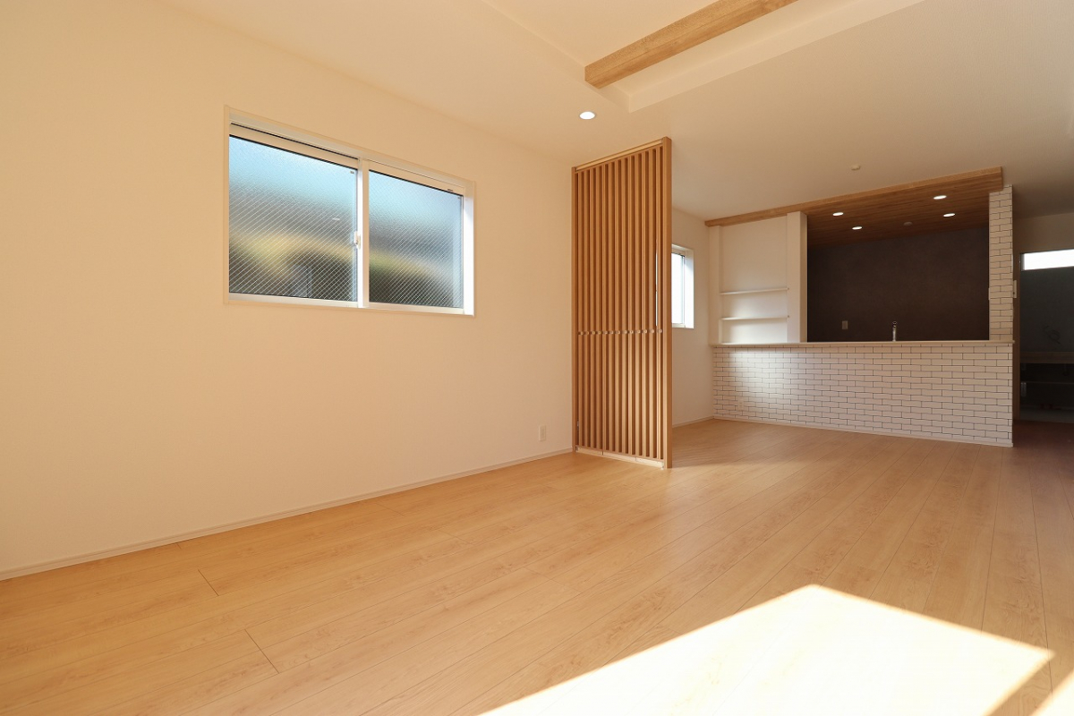 1号棟LDKに格子間仕切・マルチスキップ採用しオシャレ空間を演出!