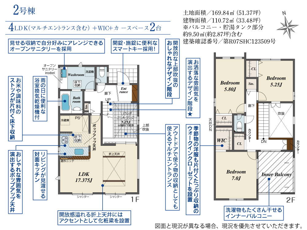 1号棟:奥様が嬉しい広々としたインナーバルコニー・来客時には客間にもなる和室など充実プラン☆彡