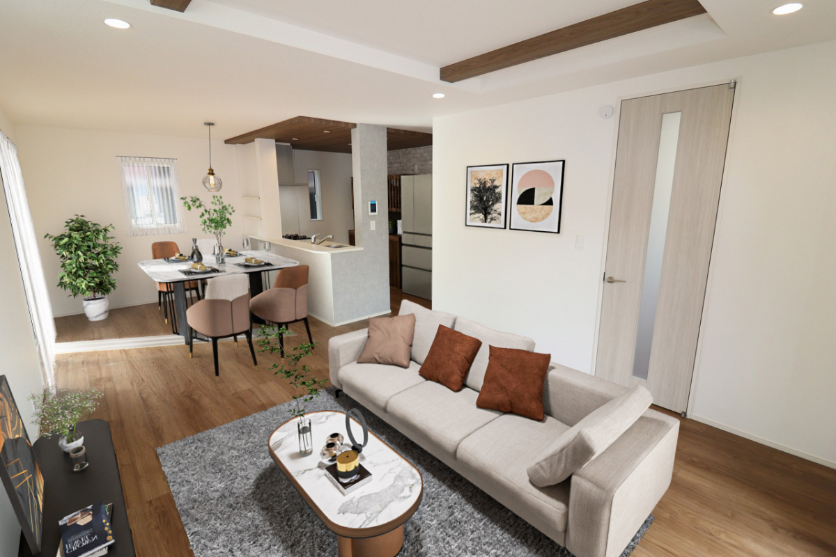 2号棟広々としたLDKと吹抜の採用により玄関が開放的♪