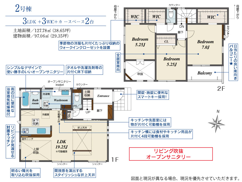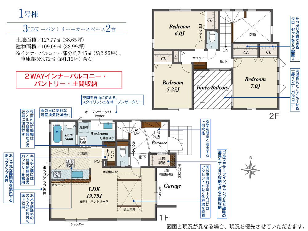 1号棟広々としたインナーバルコニー・オープンサニタリー・4段可動棚を採用♪