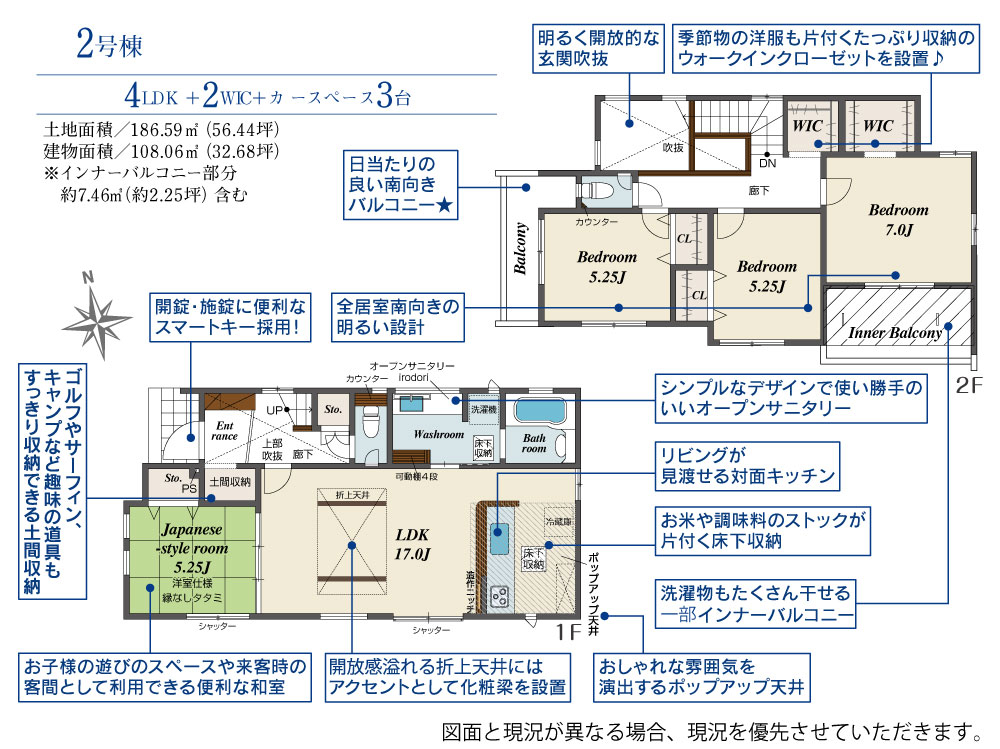 2号棟:すべてのお部屋にあたたかな陽光が差し込む全居室南向きプラン♪洗濯スペースと憩いのテラスを分けて使える便利な2つのバルコニー☆彡