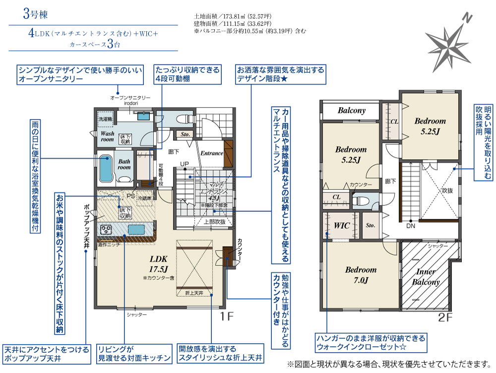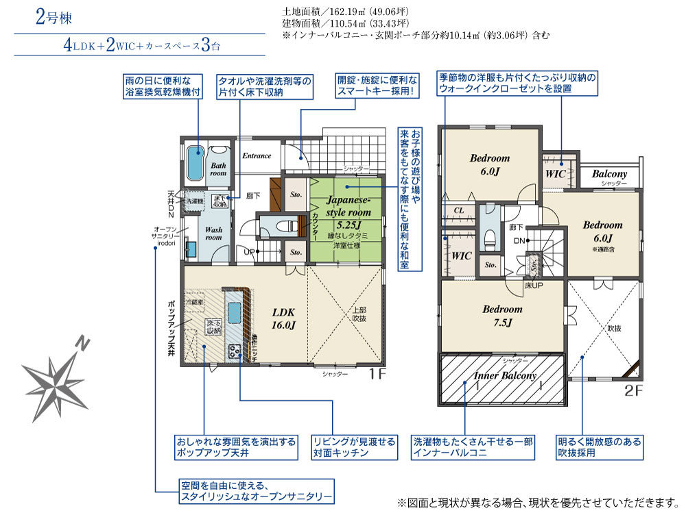 1号棟天気や時間を選ばず洗濯物を干せる広々したインナーバルコニー☆土間収納・キッチン横パントリー・可動棚4段の豊富な収納でスッキリ快適な生活★